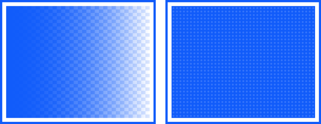 Especialmente los colores sólidos, como los colores spot Pantone predefinidos, se producen menos suaves y con más ruido utilizando métodos de difusión estándar.